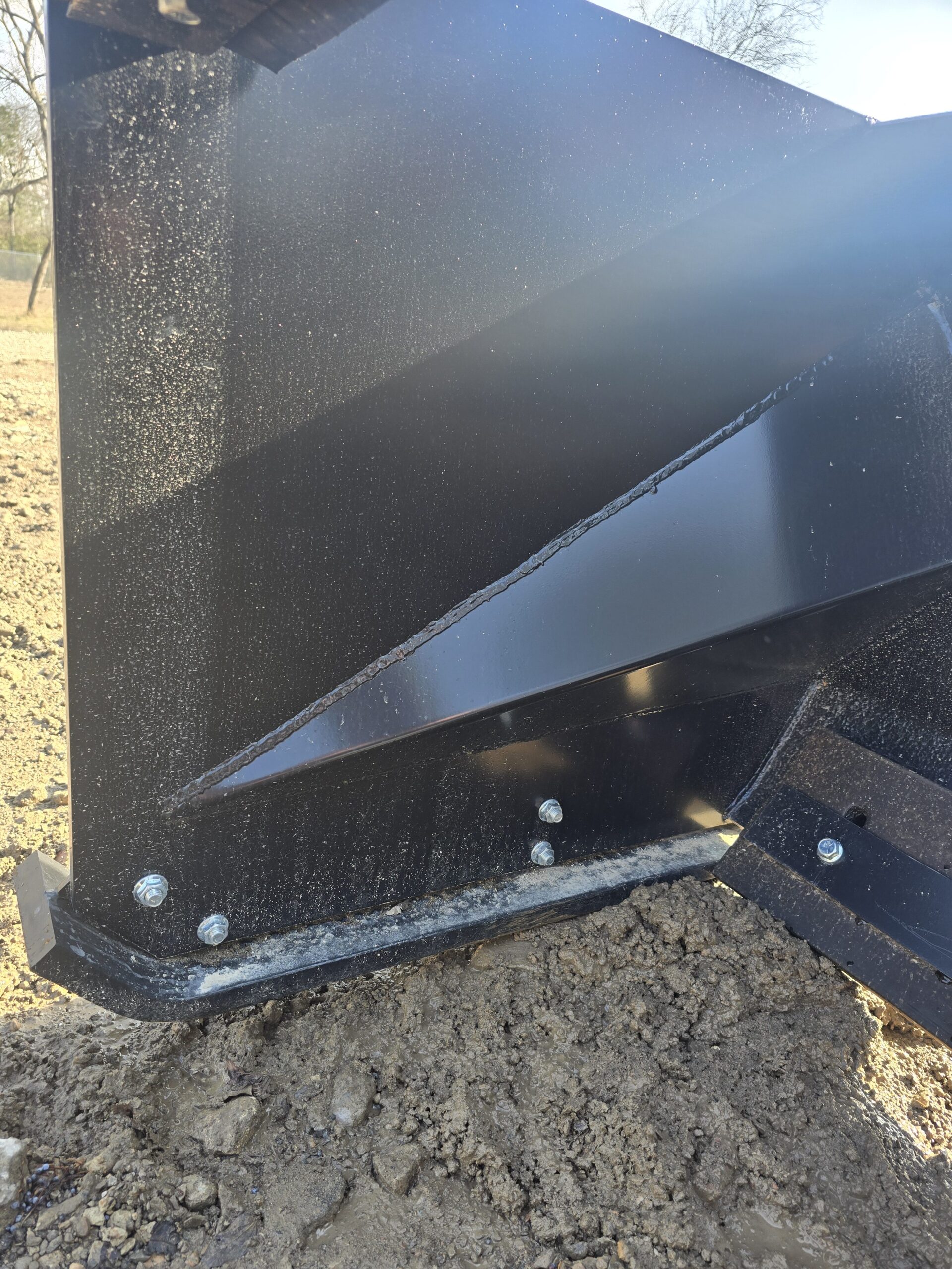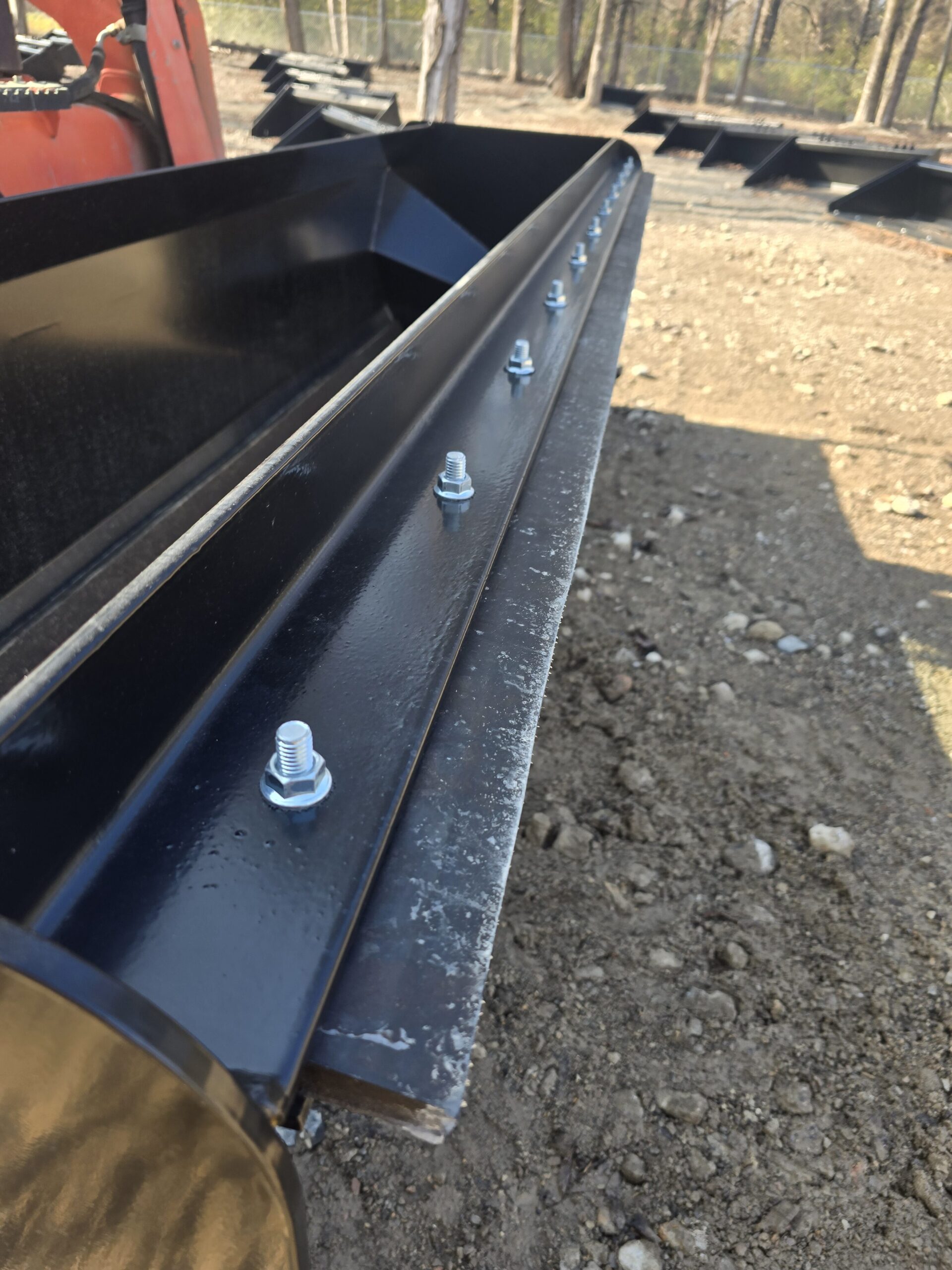 This specially designed snow pusher features 30″ tall and 36″ deep side boards to allow John Deere, Case, and New Holland skid steers to use the pullback bar without worry of the rubber main edge hitting the tires. The pullback bar is welded into the pusher with a rubber cutting edge so you can roll your snow pusher over 90 degrees to back drag snow away from garage doors, docks, etc. Your machine must have over 90 degrees rotation at 36″ above the ground to utilize the pullback bar.